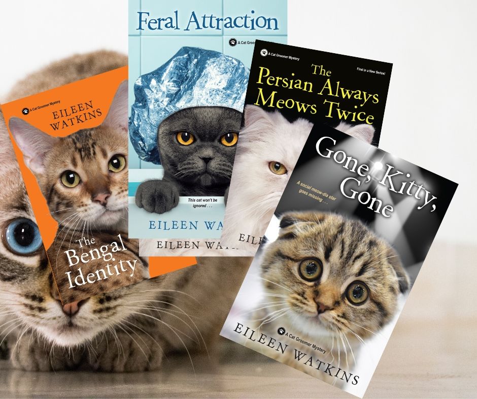 “I write the Cat Groomer Mysteries series for Kensington Publishing, so far including The Persian Always Meows Twice, The Bengal Identity, Feral Attraction, and Gone, Kitty, Gone.” I’ve wanted to write fiction ever since I was a child, and won my first short-story contest in college. For most of my life, I made my living writing and editing feature stories (nonfiction) for two major daily newspapers. Over 30 years I wrote about six novels, mostly paranormal thrillers. I sent them to agents or editors, got them back, changed them a bit, sent them out again, got them back again. (Rinse, repeat.) Finally, in 2002, I connected with a new electronic but “traditional” publisher who accepted one of my thrillers, then went on to publish everything else I had in my files. Eventually I put out eight books with them. The last two paranormals were mysteries, and borderline cozy—a female amateur sleuth with psychic gifts. Shortly after those came out, the small publisher went out of business. But an agent who had read one of my mysteries approached me to write the series I’m currently doing for Kensington.